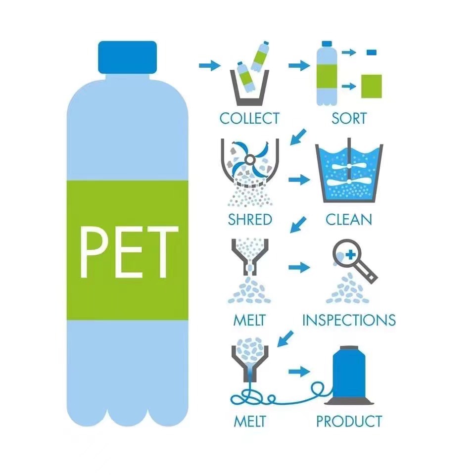 פוליאסטר ממוחזר, הנקרא לעתים קרובות RPET, עשוי מבקבוקי PET ממוחזרים שנזרקו. הבקבוקים המושלכים ממוחזרים.